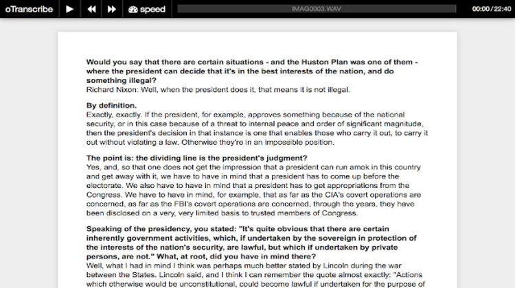 oTranscribe is an online tool that allows users to transcribe their audio-video recordings more straightforwardly. oTranscribe makes it easier for the user to transcribe every conference or meeting video &