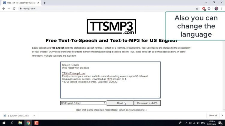 ttsmp3 is an online Web-based converter tool that allows users to convert their US English texts into MP3 audio. It provides the best means to transform users’ text into audio