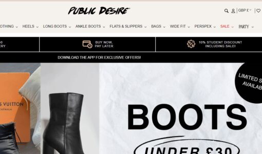 Public Desire is a well-known selling website that refers to a massive selection of outwear and footwear. This site offers you clothes, shoes, bags, and more. It is the best